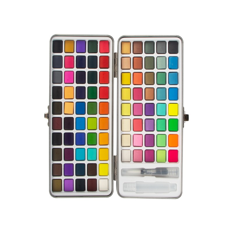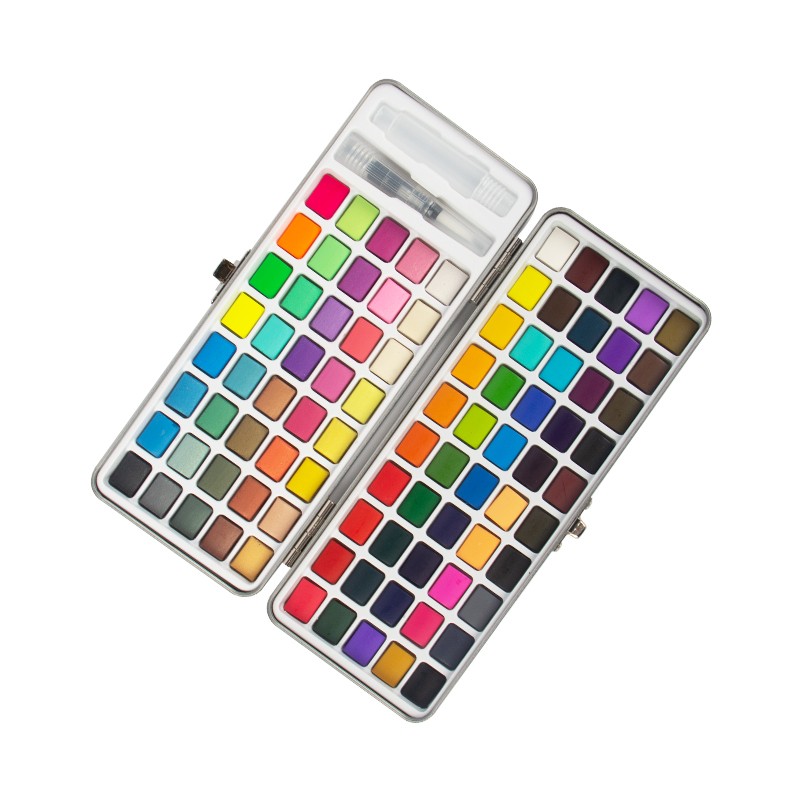 Wysokiej jakości zestaw akwareli z ołówkiem i pędzlami, wszystko w zestawie. Ten 90-kolorowy zestaw farb akwarelowych z pudełkiem upominkowym umożliwia malowanie farbą akwarelową w domu lub w podróży, 1 ołówek. Ten zestaw akwareli jest wyposażony w najszerszy wybór akcesoriów akwarelowych, idealnych dla artystów.