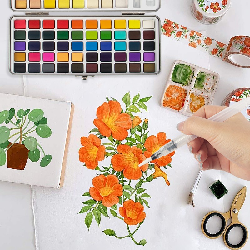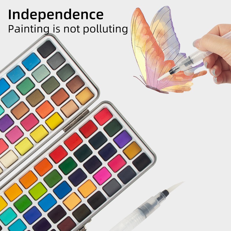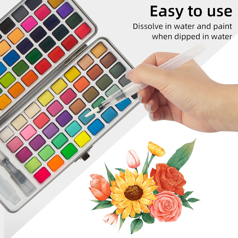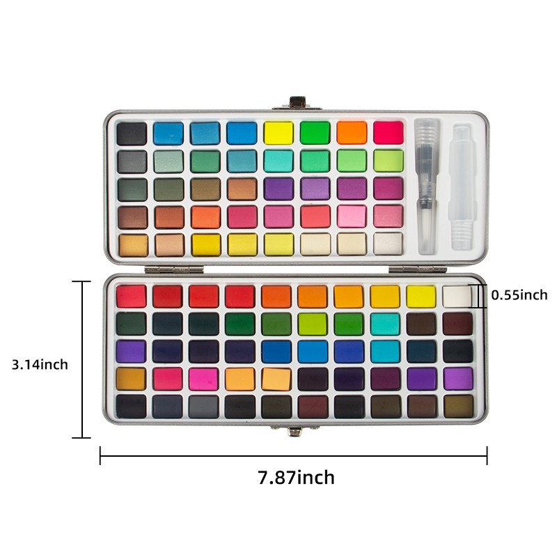 Idealny przenośny zestaw farb akwarelowych, najlepszy podróżny zestaw akwareli z kompaktowym pudełkiem do przenoszenia, rozmiar 3,74 * 8,26 cala, solidna metalowa obudowa nie zajmie dużo miejsca w torbie, jest lekka i przenośna. Zestaw 90 kolorów akwareli z pudełkiem upominkowym, pięknie umieszczony w pudełku upominkowym, został doceniony przez wielu artystów. Niezależnie od tego, czy są w podróży, czy w domu, w spokojnych wiejskich sceneriach, tętniących życiem parkach, piaszczystych plażach, bujnych ogrodach czy tętniących życiem krajobrazach miejskich, artyści znajdują swobodę oddawania się swojej pasji do malarstwa, gdziekolwiek się pojawią.